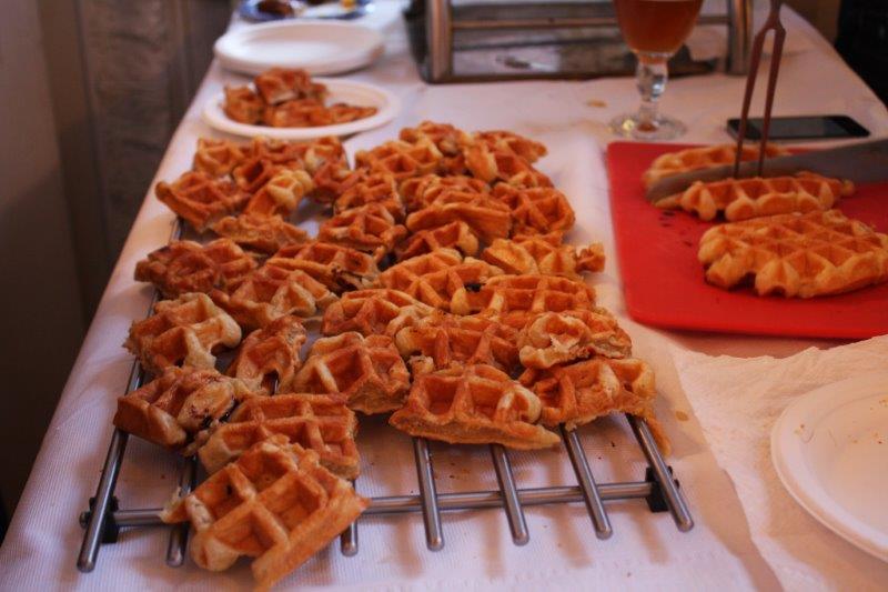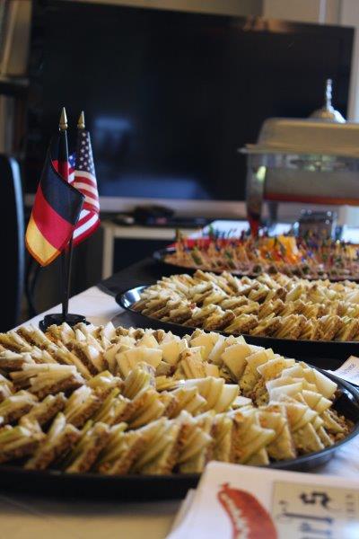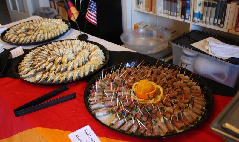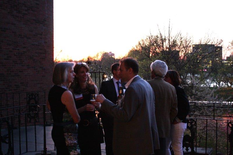 This popular professional networking event featured fare from six European countries: Germany (of course!), France, Britain, Belgium, Switzerland, and Holland in the gorgeous ballroom of the Goethe Institute, a former Back Bay mansion. Sponsors included Karl’s Sausage Kitchen (curry wurst, asparagus in Black Forest ham), vinodivino (French wine), Hacker Pschorr & Paulaner (German beer), Zinnekan’s Belgian waffles made fresh on the premises, Dutch pastries from FABIAN, Dutch Genever from Lucas Bols, and so much more! The summer evening was perfect for enjoying the terrace overlooking the Charles River.