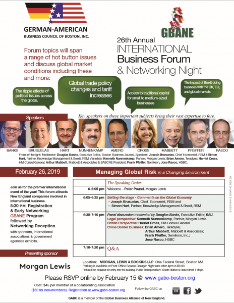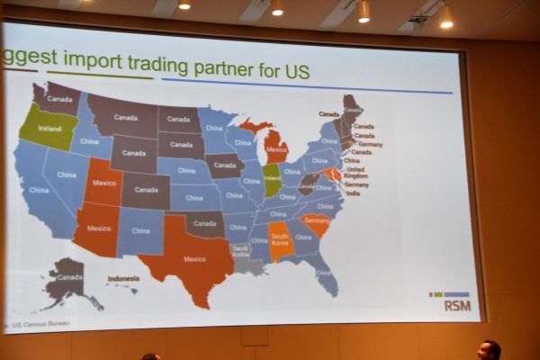 They heard about global risks, trade policy changes, the impact of the impending Brexit (or not?) on the markets followed by a panel discussion featuring the economic, legal, financial perspectives as well as the perspective from the ground, including from Frank Pfeiffer, CEO at SEMIKRON Inc., a German manufacturer of power modules, who was one of the panelists.