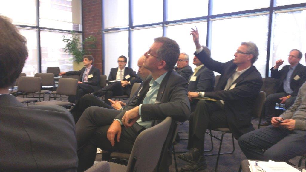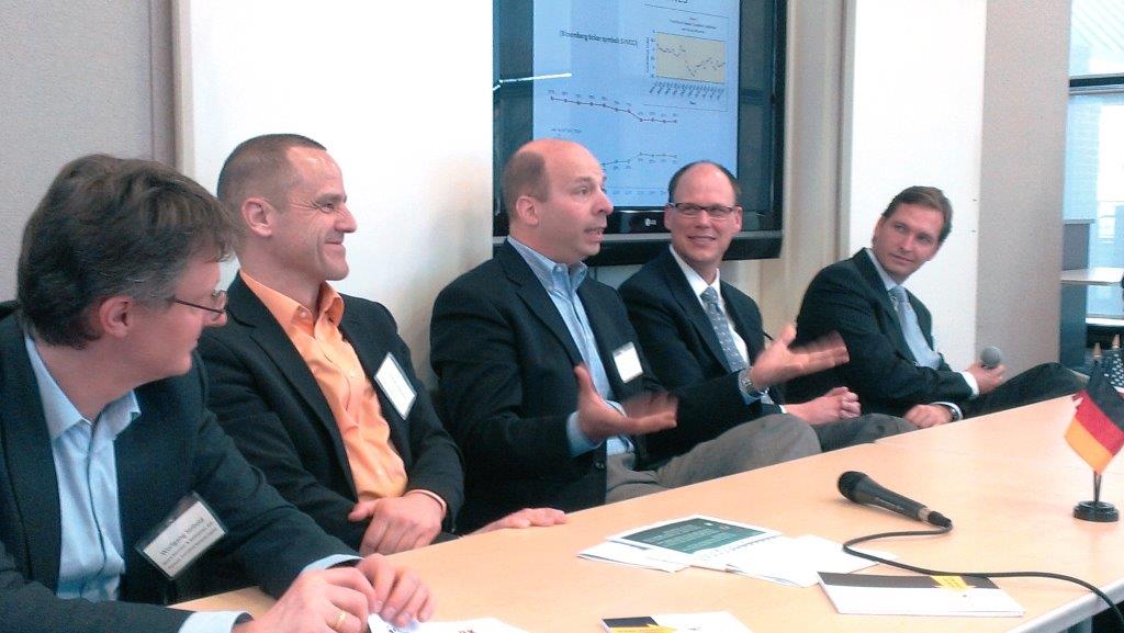 Presentations followed by small group roundtable discussion of the true venture capital environment and investment opportunities in Germany. Presenters: Wolfgang Seibold, Spokesman for Venture Capital Platform of the German Private Equity and Venture Capital Association (aka BVK); , Investment Manager, High-Tech Gründerfonds; Yannick Wilden, Investment Manager, Fraunhofer Venture. This by-invitation-only event brought venture capital investors, start-ups and entrepreneurs from Cambridge, Boston, Munich, Berlin, Bonn, Dortmund, Dresden and Leipzig together for a highly interactive and informal exchange of ideas, experiences and war stories. Welcome remarks by Acting Consul General Claudia Schütt. Keynote by Jürgen Friedrich, CEO Germany Trade & Invest. Moderated by Dr. Jens Eckstein, VC, SR One. Sponsored by German Trade & Invest, in partnership with BVK, the German Consulate General Boston, and the German-American Chamber of Commerce New York.