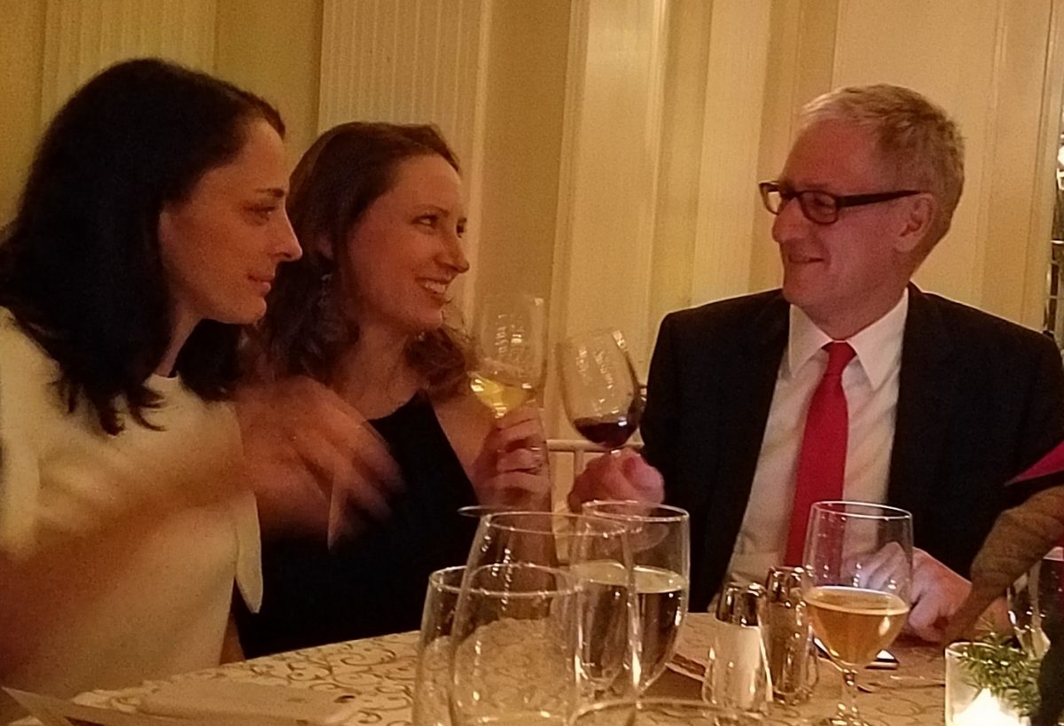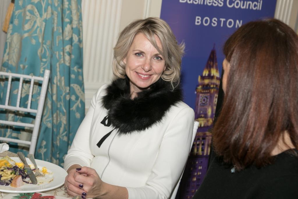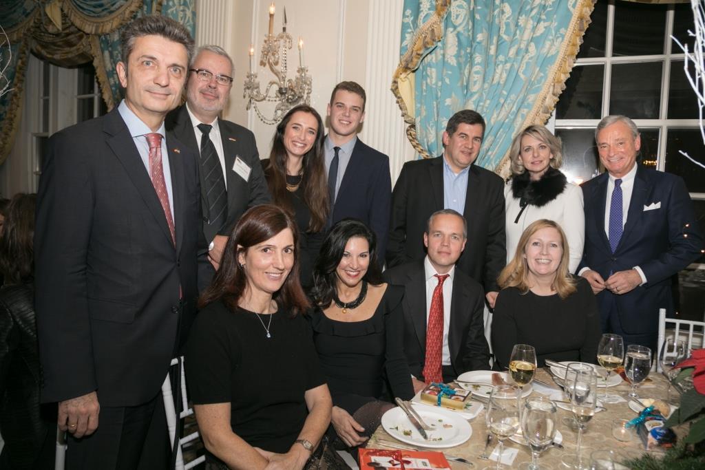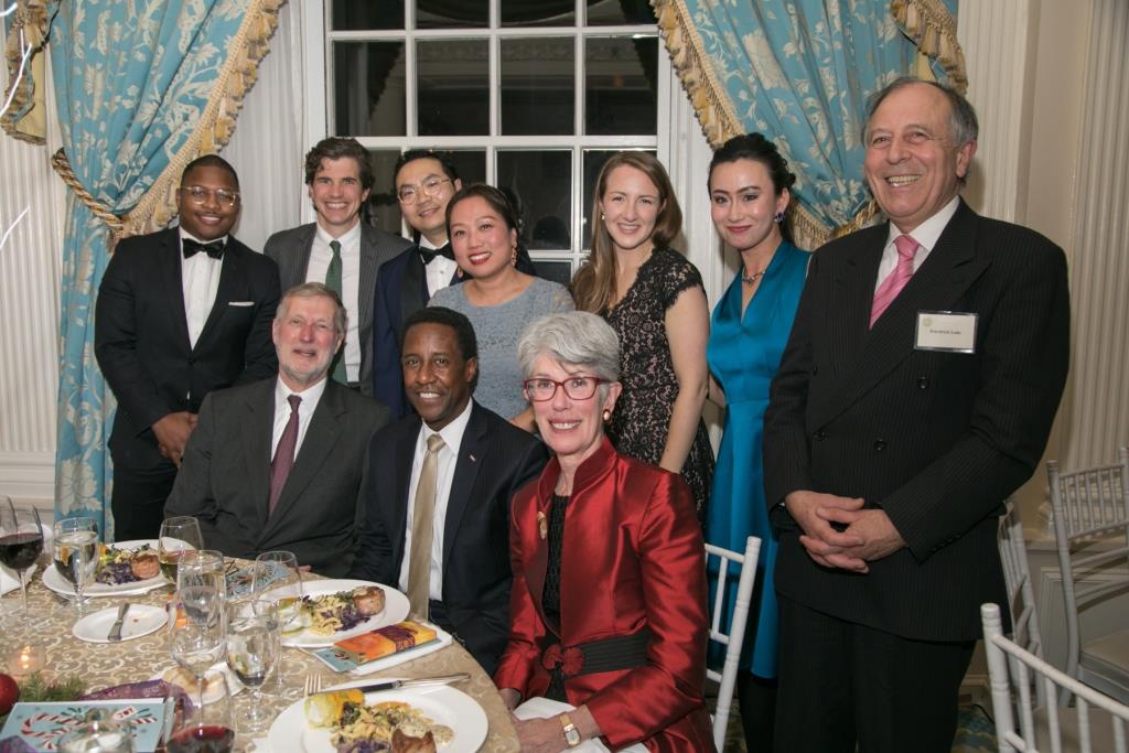 The corporate table for CollegeFindMe, hosted by Christina Bai (in blue) with guests including Setti Warren, Mayor of Newton and democratic candidate for governor (seated center) and also (retired) German Consul General Friedrich Loehr (far right).