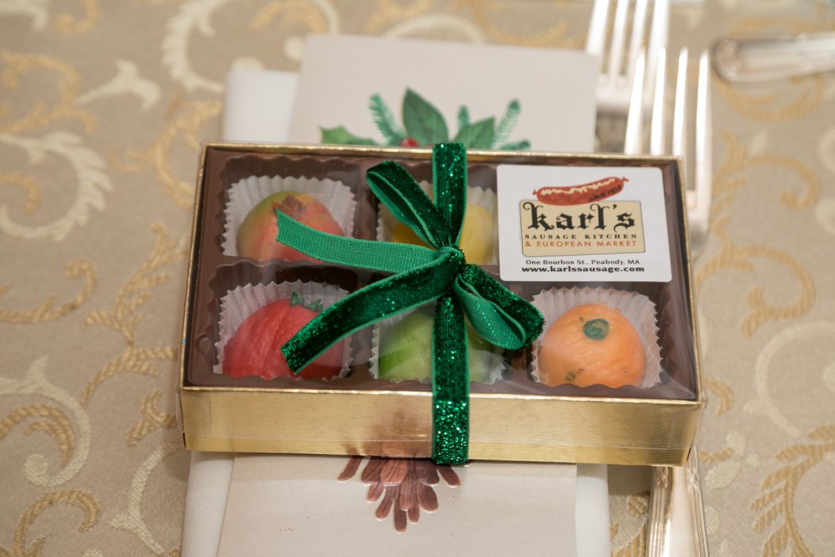 Small thoughtful gifts for all guests at corporate tables generously provided by Karl’s Sausage Kitchen of Peabody, MA. If you haven’t visited this premier market for all things German and delicious, you should go!
